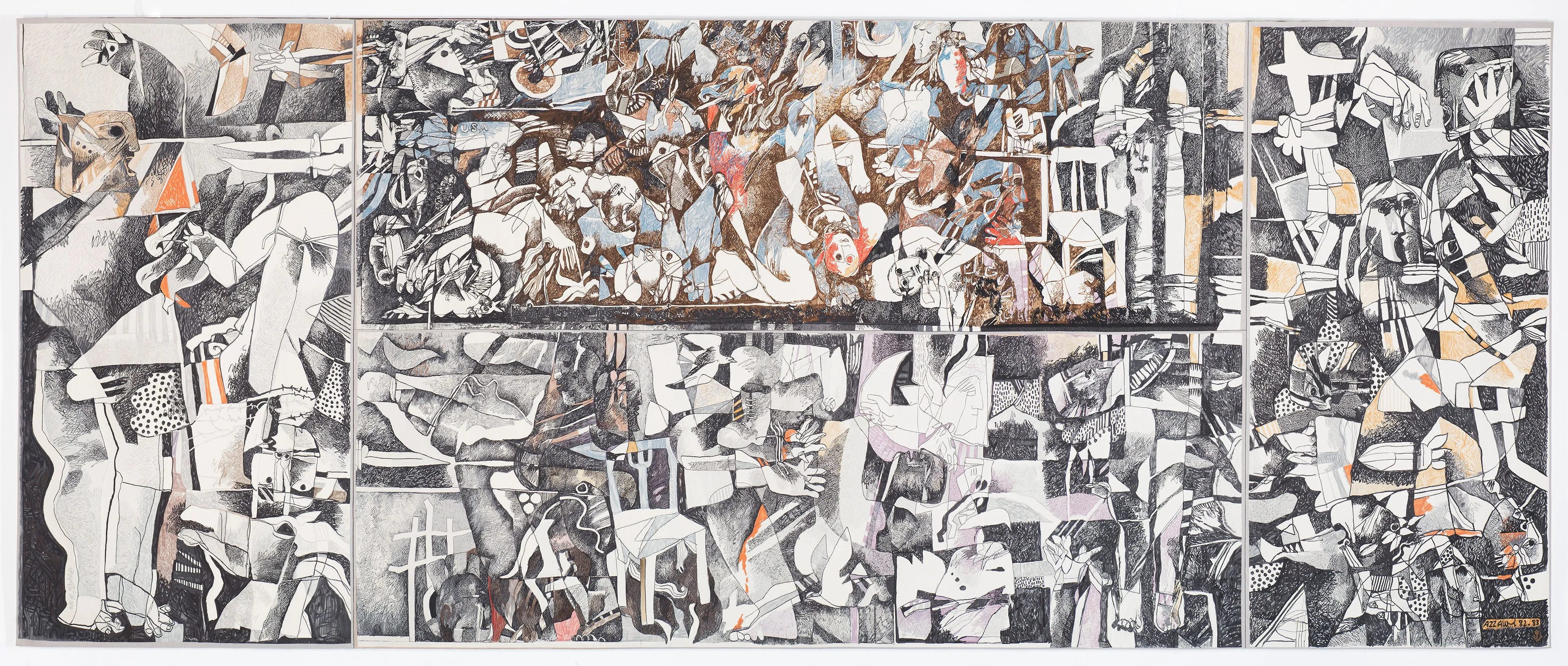 Throughout his career, Azzawi has remained responsive to political and social realities. His monumental mural Sabra and Shatila Massacre (1982–1985) confronts the massacre of Palestinian refugees during the Lebanese Civil War, transforming tragedy into a haunting visual testimony; the work is now part of the Tate Modern’s collection.