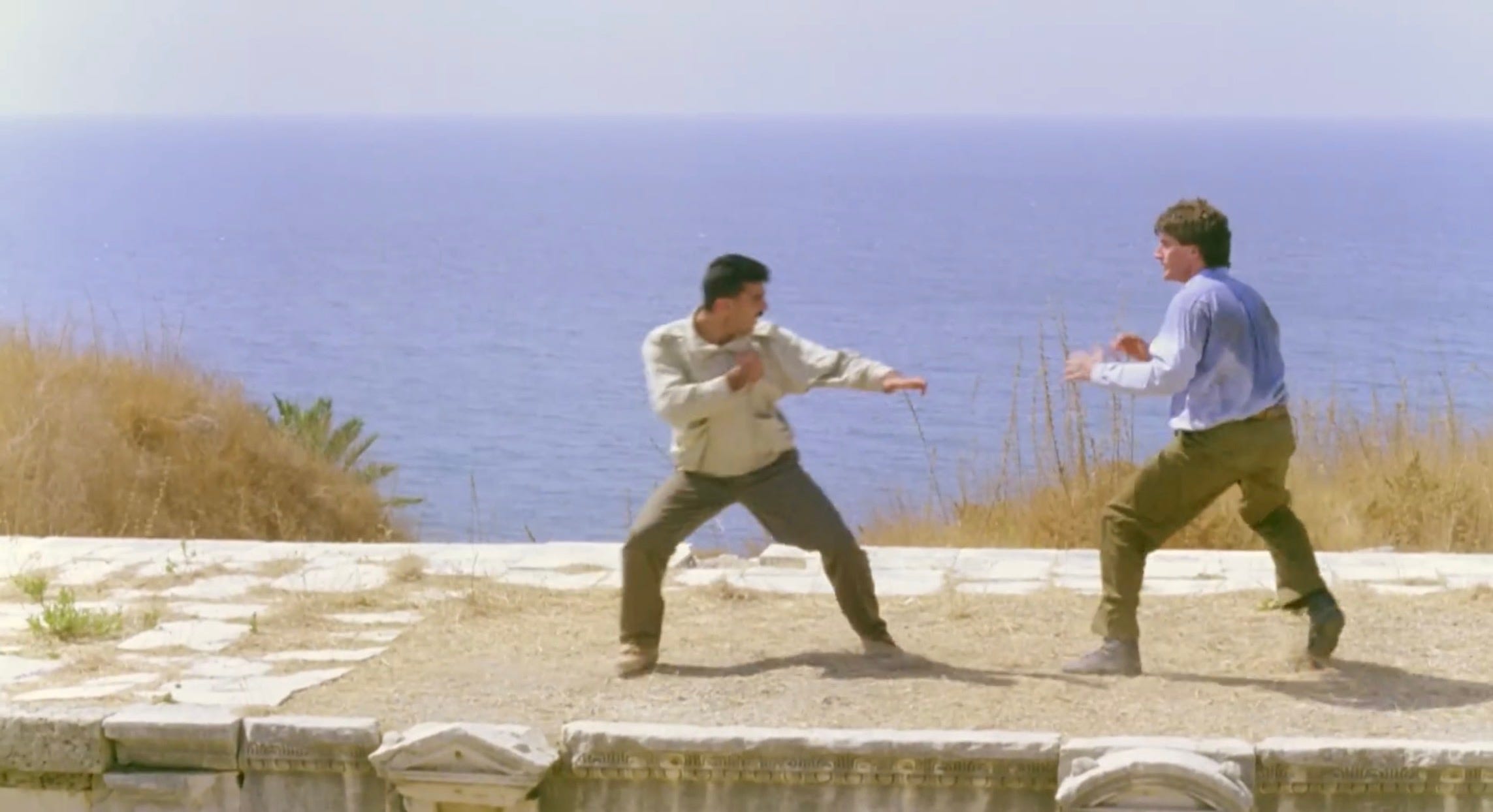 Before it’s all over, we get the inevitable final showdown, staged among the Roman ruins, in what clearly echoes the Bruce Lee–Chuck Norris fight in The Way of the Dragon. Columns loom, stone fills the frame, and the film leans fully into spectacle.