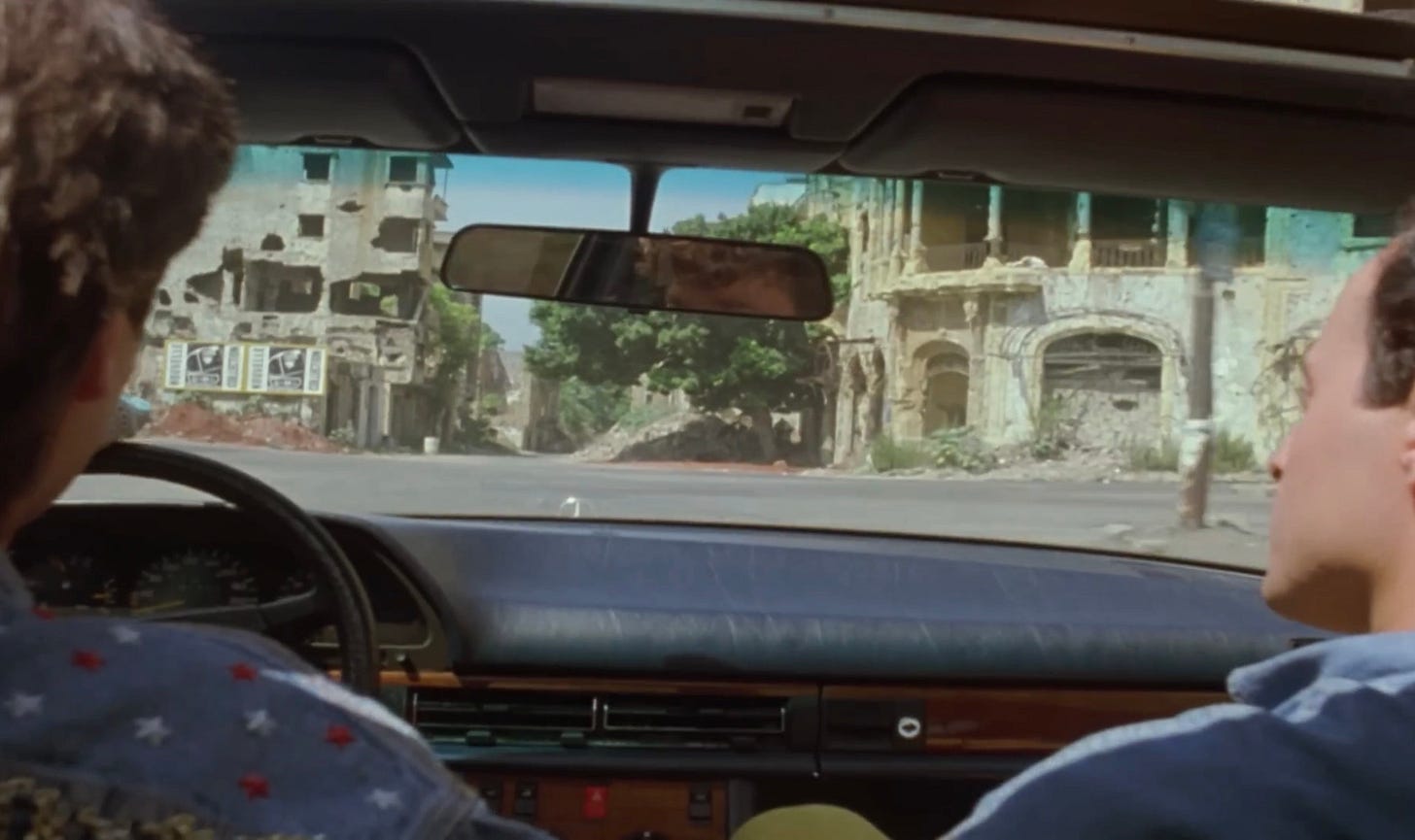 Shot only a few years after the end of the civil war, Lebanon appears as a place still visibly unsettled. Urban spaces remain unfinished, coastlines exposed, and signs of damage linger in the background. These conditions are never addressed by the film. The camera moves through them without comment, treating them as ordinary.