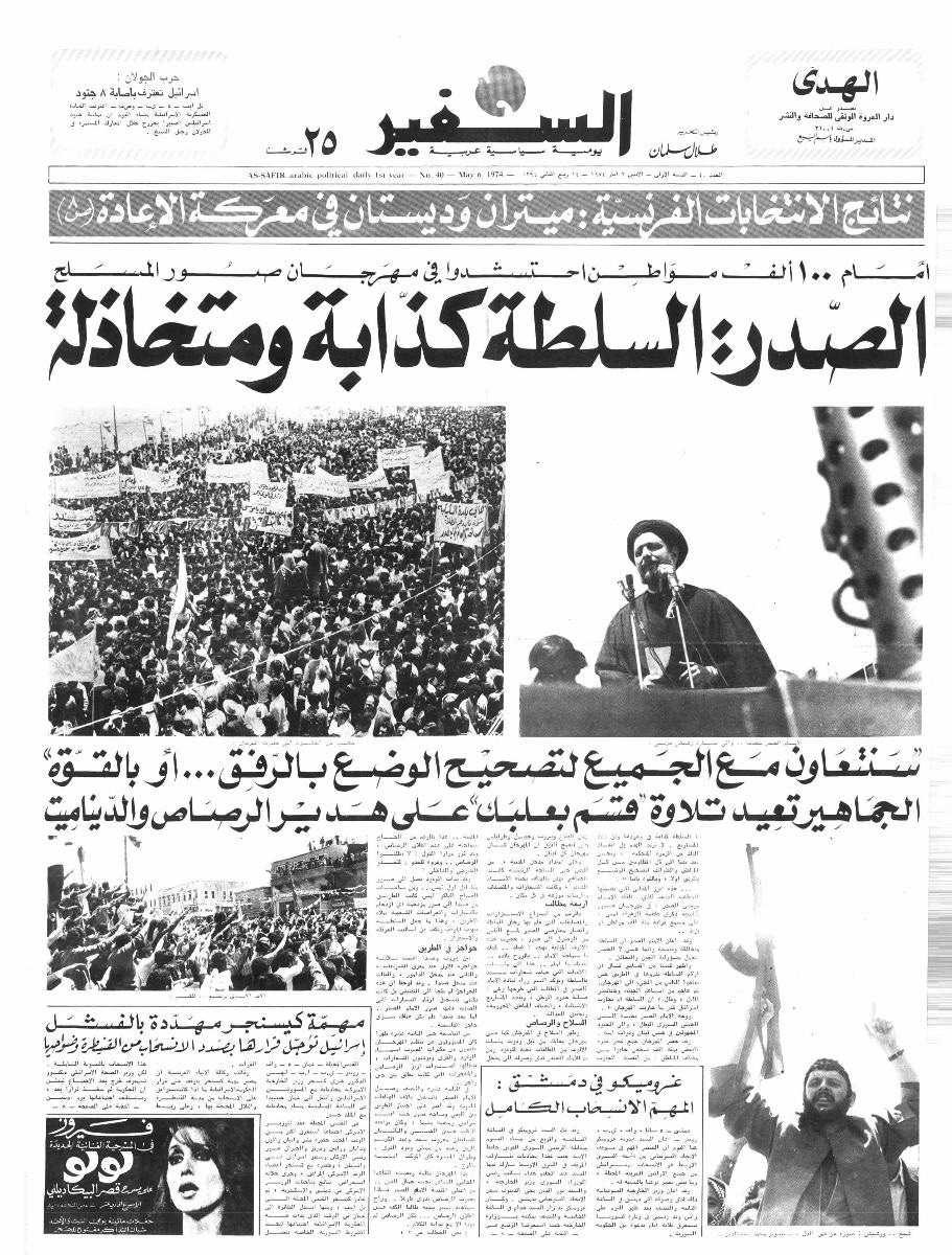 Al-Sadr at a rally in Baalbek, announcing the establishment of Movement of the Deprived (Harakat al-Mahrumin), Al-Nahar, 18 March 1974.