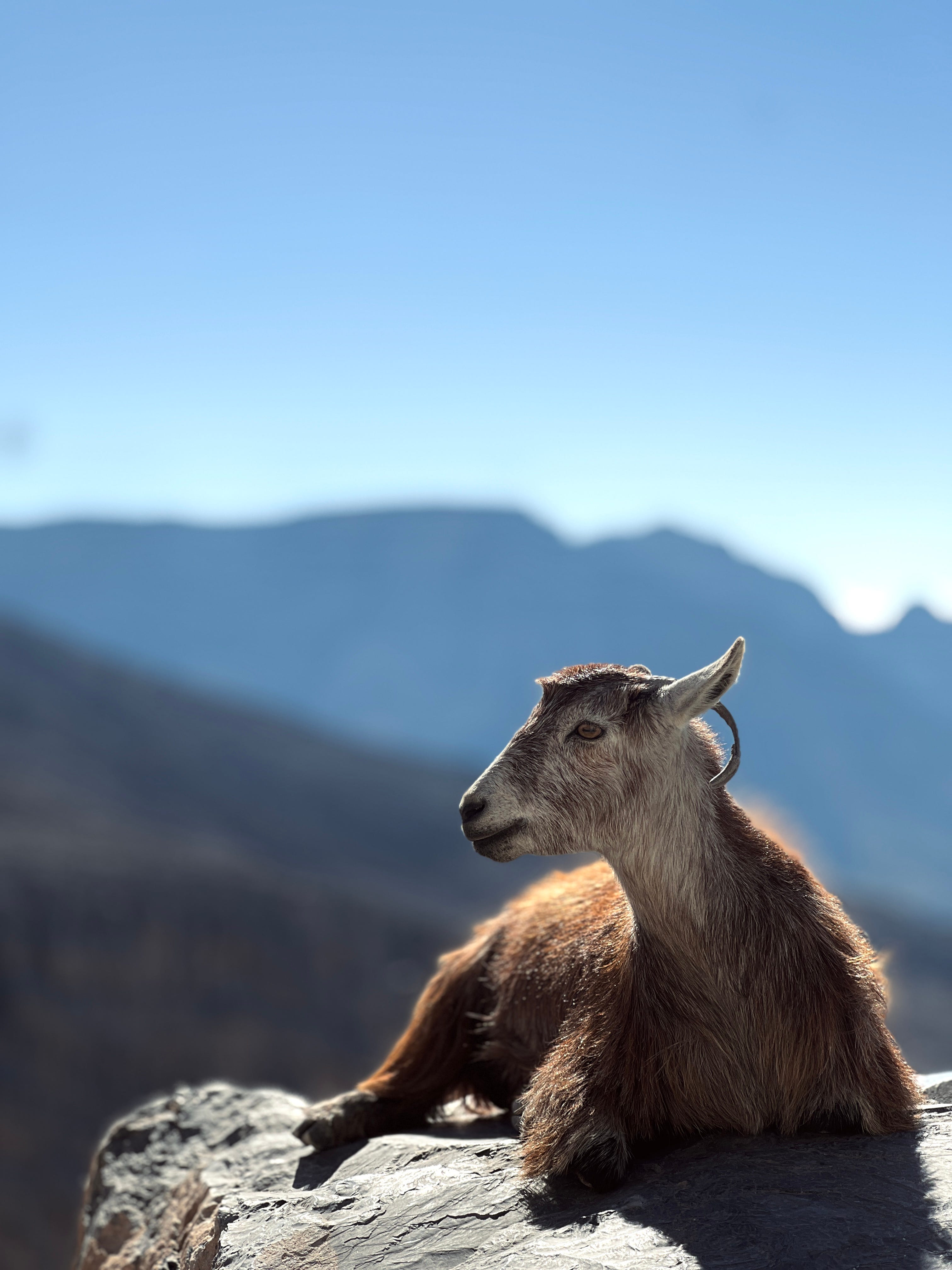 Arabian tahrs inhabit rugged slopes and cliffs from a few hundred meters to over 2,000 meters above sea level. Vegetation is sparse, but the terrain offers protection. Their split hooves, with soft undersides, provide excellent grip on rock, allowing them to move confidently across steep and unstable surfaces. This ability places much of their habitat beyond the reach of predators and people.
