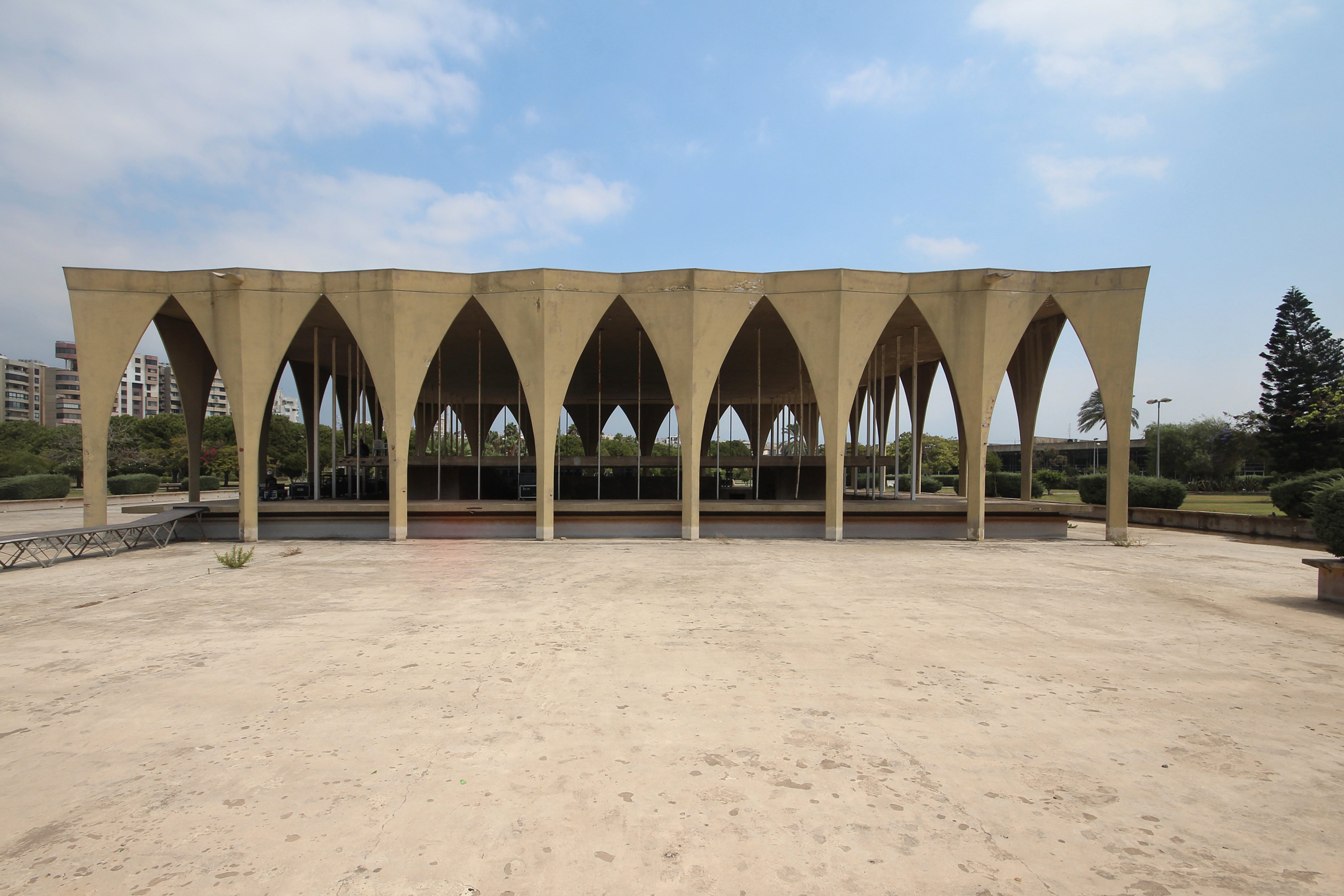 Around fifteen independent structures populate the site, many echoing forms Niemeyer explored elsewhere. The experimental dome theatre recalls his work in Brasília, while the Lebanese Pavilion adapts modernist principles to local architectural references. Other elements include an open-air theatre accessed by a monumental ramp crowned by a concrete arch, a heliport integrated with a space museum, a water tower topped by a panoramic restaurant, a children’s pavilion shaped like a pleated pyramid, and experimental housing prototypes.
