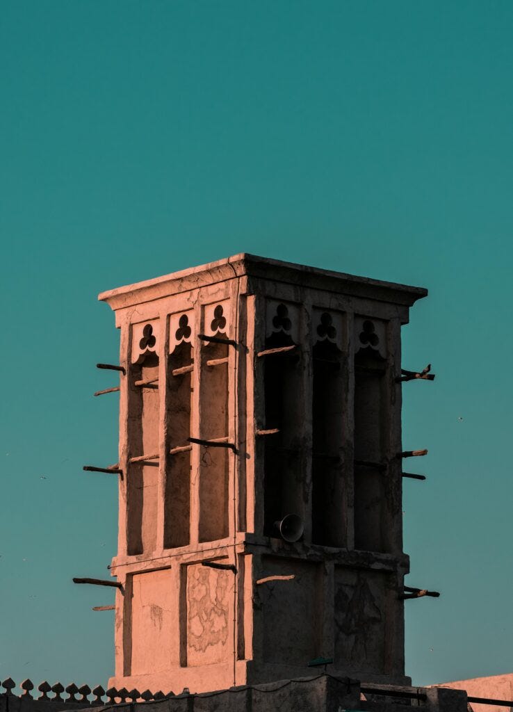 The wind catcher, or wind tower, is a prevalent feature in the traditional architecture of various cities in the Arab World. They are typically found in settlements situated in hot and dry or hot and humid climates. They usually take the form of large chimneys in the skyline of cities. Wind catchers are vertical shafts with vents at the uppermost part, designed to direct desired winds into interior spaces and provide thermal comfort for the space below. This architectural element is an example of how architecture can harmonize with the natural environment by conserving energy and functioning based on sustainable principles.
