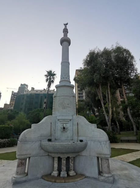 In 1898, Aftimus was appointed municipal engineer of Beirut. One of his early notable contributions was the design of the Hamidiyyeh Fountain in 1900, dedicated to Sultan Abdulhamid II. Originally located at Riad el-Solh/as‑Sour square, the fountain was later relocated to Sanayeh Park, where it still stands.